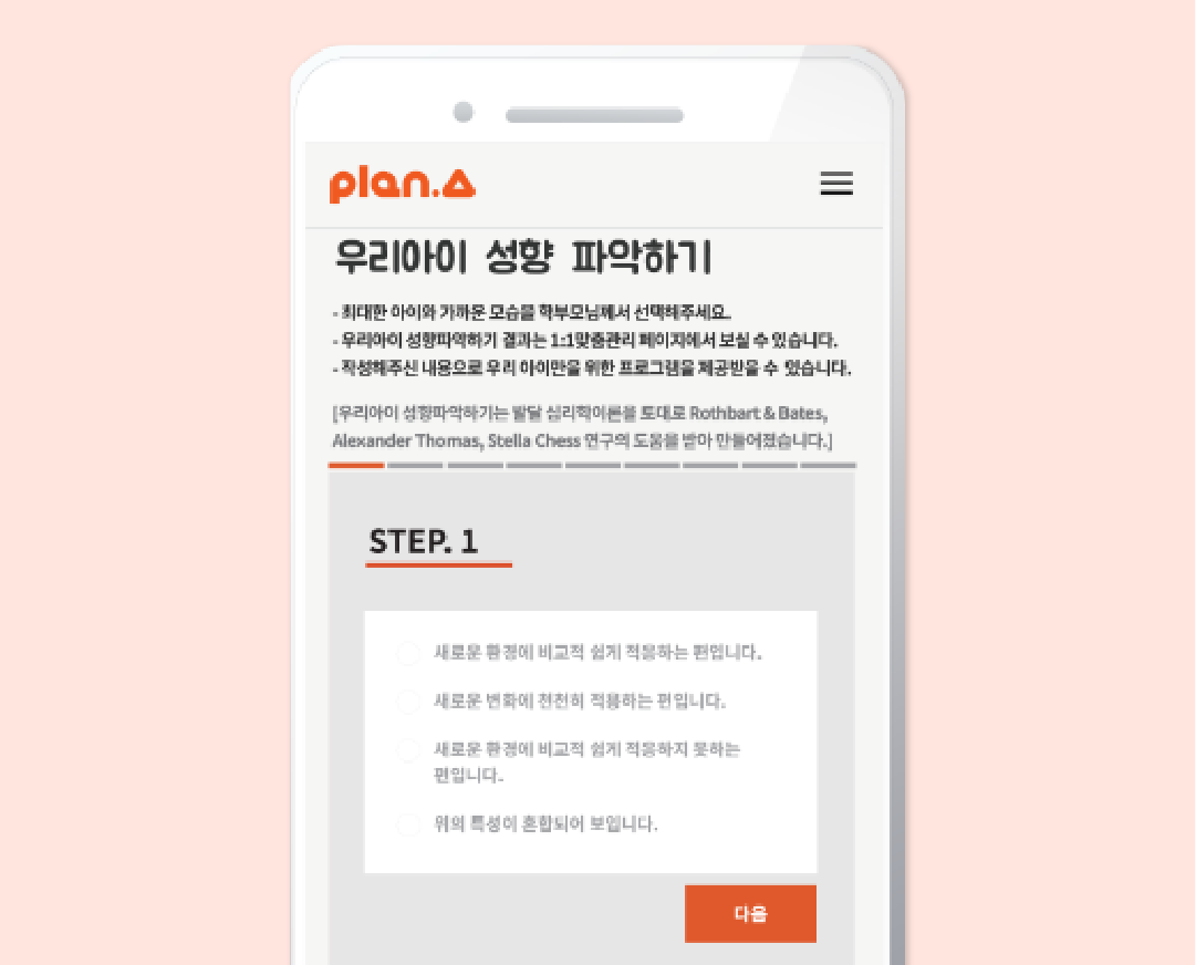 * 아이 성향에 맞게 커리큘럼을 개별 설계는 플랜에이 뿐이라는 점 🙂