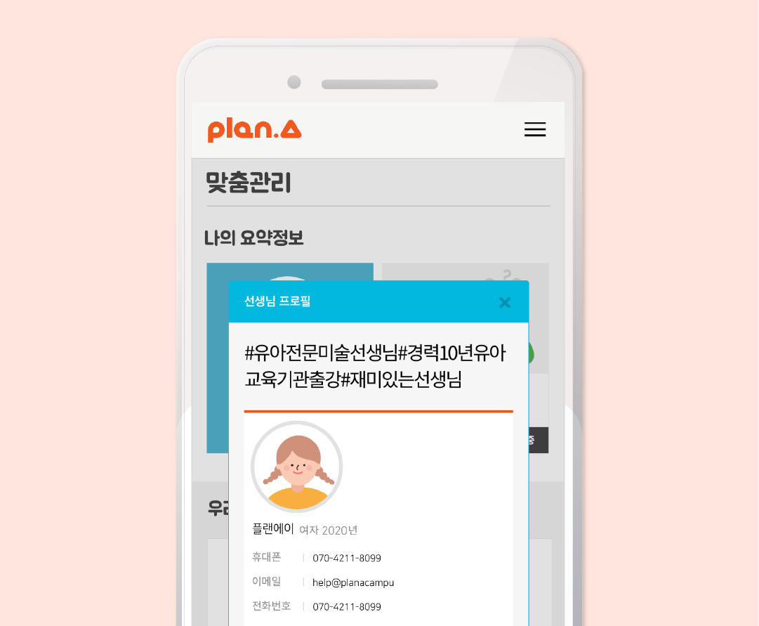 사실, 부모님들의 가장 큰 걱정은 선생님일 거예요. “우리 아이에게 잘 맞는 선생님이 올까?” 물론 100%까진 아니지만, 플랜에이는 5단계로 아이에게 맞는 선생님을 매칭하고 있어요!