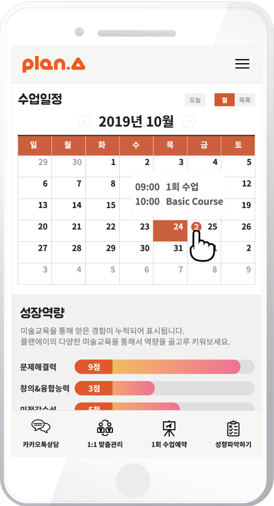 플랜에이의 장점이 1:1맞춤 관리가 가능하다는 점인 만큼, 수업 관리는 무엇보다 편했으면 좋겠어요.
