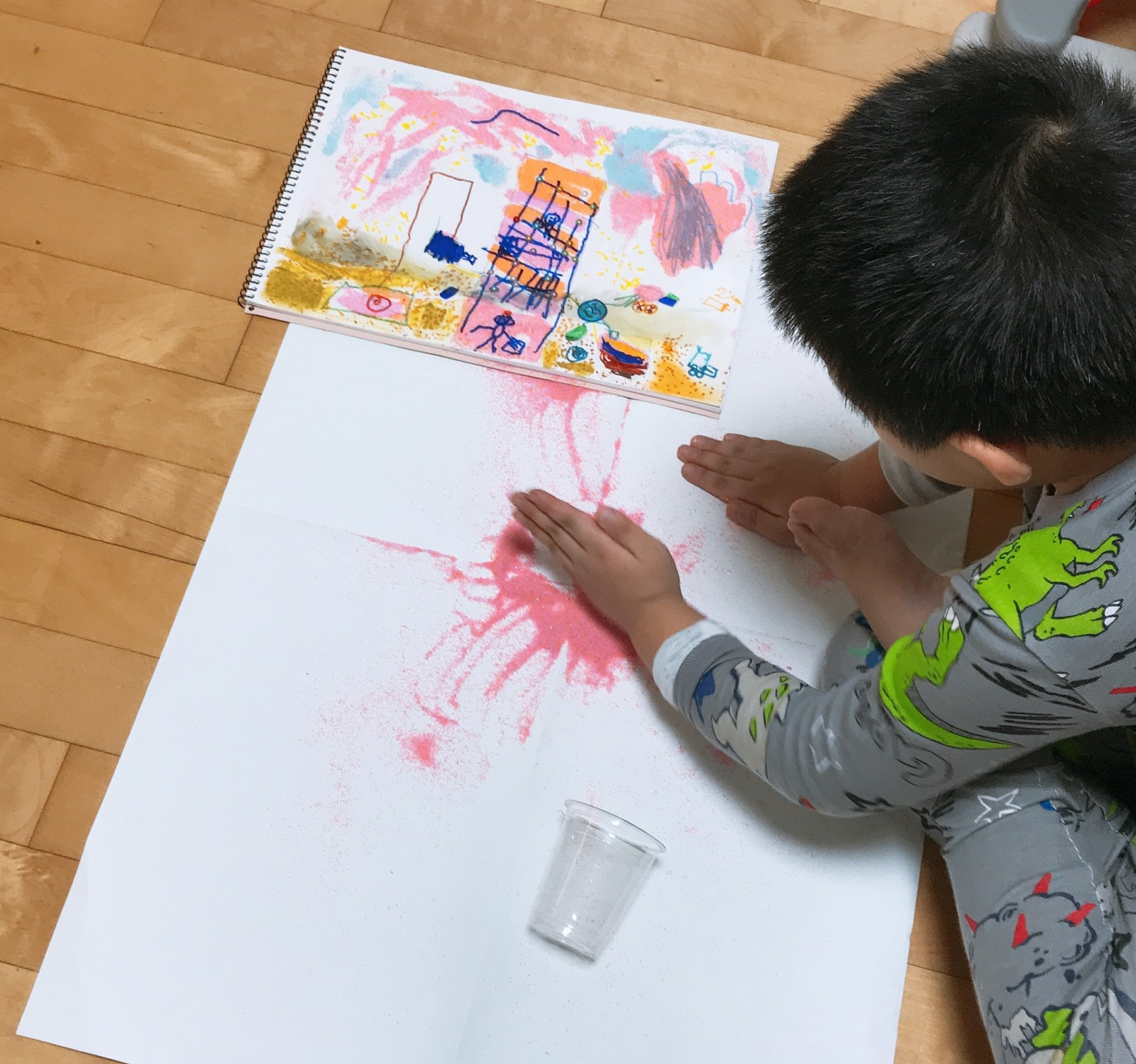 핸디코트의 질감을 느껴보고, 우드락에 펼쳐 바르면서 ‘바다 질감 같다’는 이야기를 하던 아이. 재료를 그렇게 열심히 탐색하더니 갑자기 이렇게 말합니다.