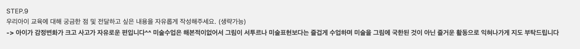 그래서 수업 전 어머님께서도 성향 파악에 이렇게 남겨주셨어요.