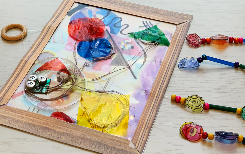 우리 아이 추상화를 멋진 피규어로 만들어요. 열을 가하면 플라스틱으로 변하는 슈링클스 필름을 이용해, 소리를 만드는 모빌을 만들어봐요.