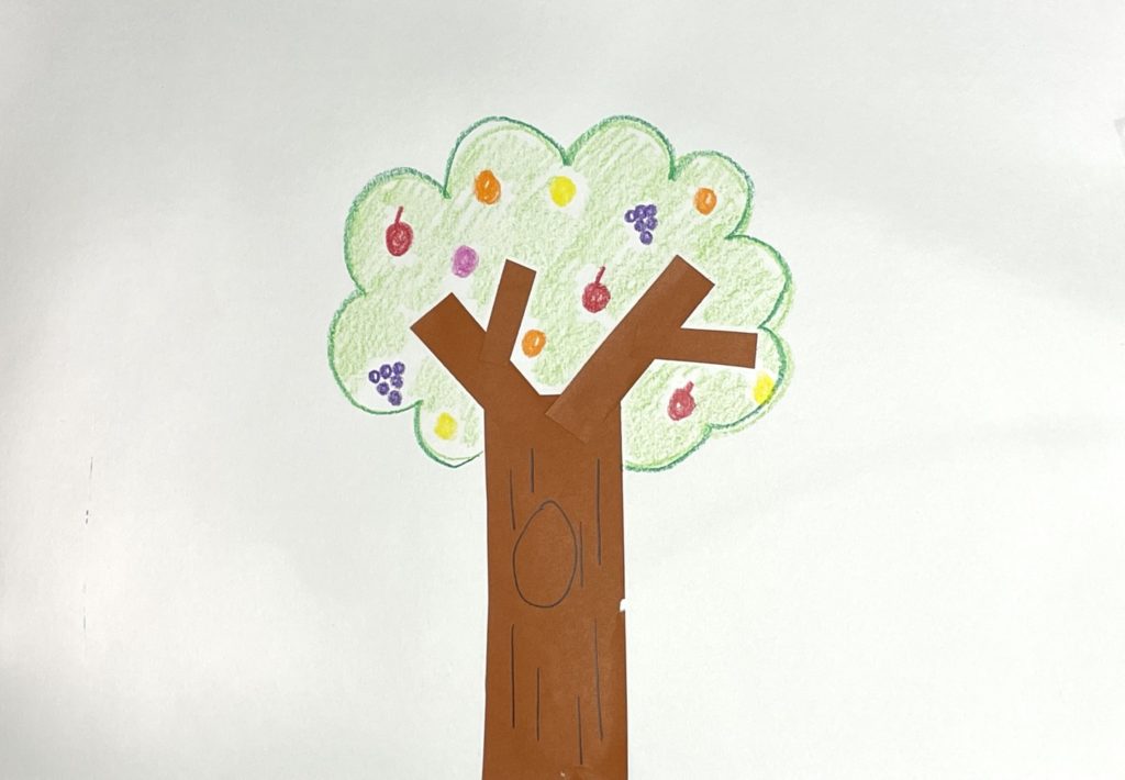 “상상속의 나무를 표현해도 된단다. 다른 친구들은 자기가 좋아하는 포켓몬들이 열리는 나무, 반짝이는 보석이 열리는 나무를 그리기도 했단다.”