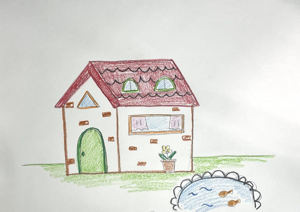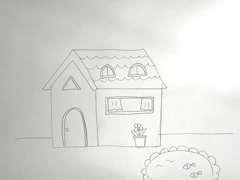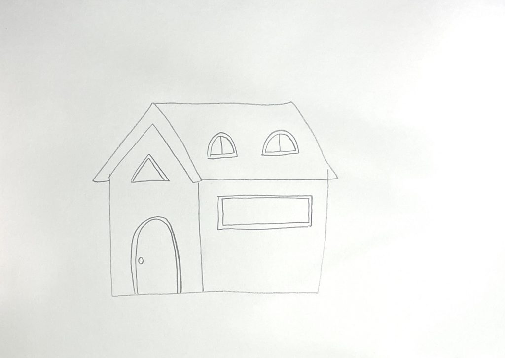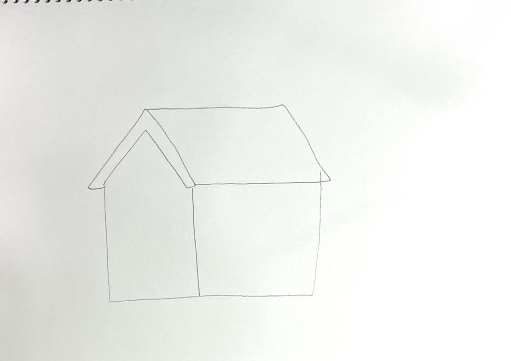 첫번째 방법: 자녀가 집 드로잉이 가능하다면 연필로 집 형태를 스케치 해주세요.