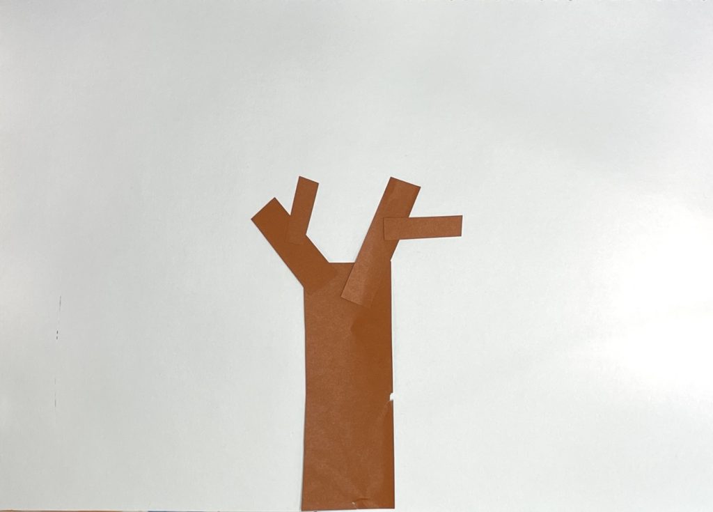 제공된 갈색 색종이로 나무 기둥, 나뭇가지를 먼저 만들어줄거에요.