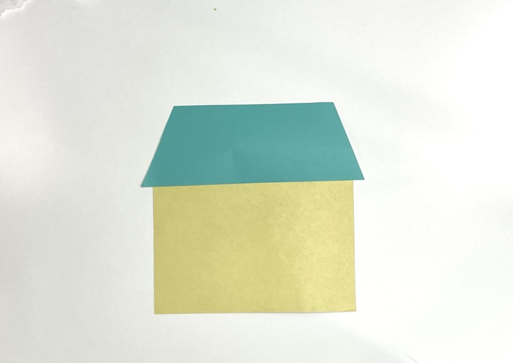 두번째 방법: 집 드로잉이 아직 어렵다면 제공된 색종이를 기본도형(네모,세모,사다리꼴)으로 잘라서 집모양을 완성해주세요.
