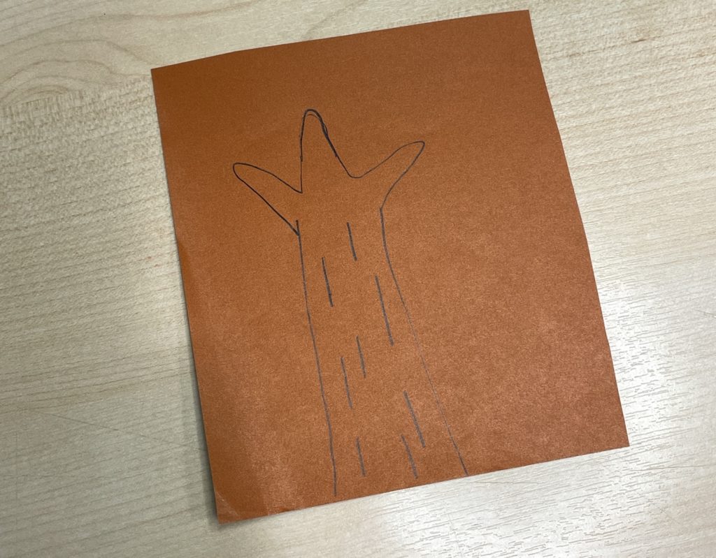 두번째 방법: 색종이에 나무 기둥과 나뭇가지 모양을 드로잉하고