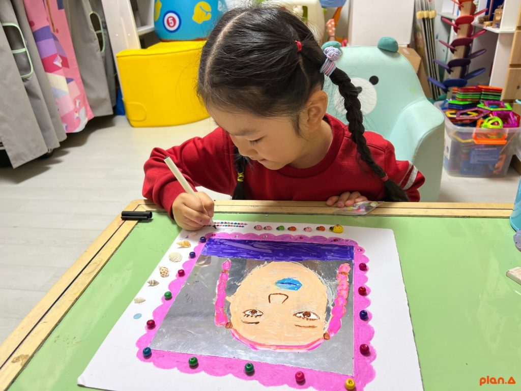 - 얼굴을 관찰하고 그려보면서 어떤 부분이 즐거웠는지, 어떤 부분이 어려웠는지 과정에 대한 칭찬과 격려를 해줍니다.