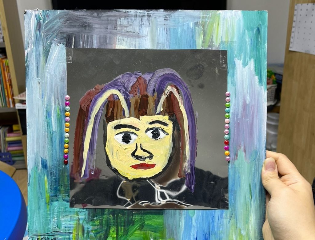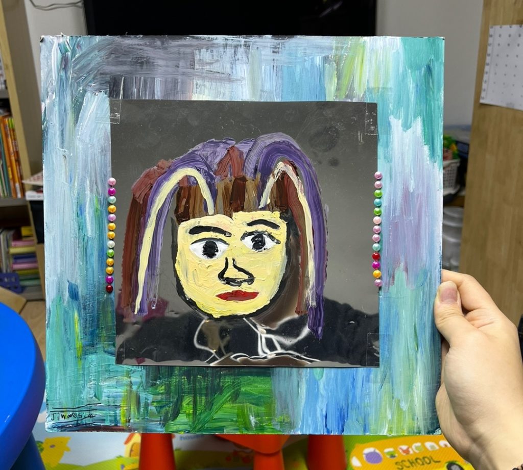 - 거울을 보며 자신을 있는 그대로 표현해보거나 창의력을 동원해 표현한 자신만의 자화상을 표현해봅니다.