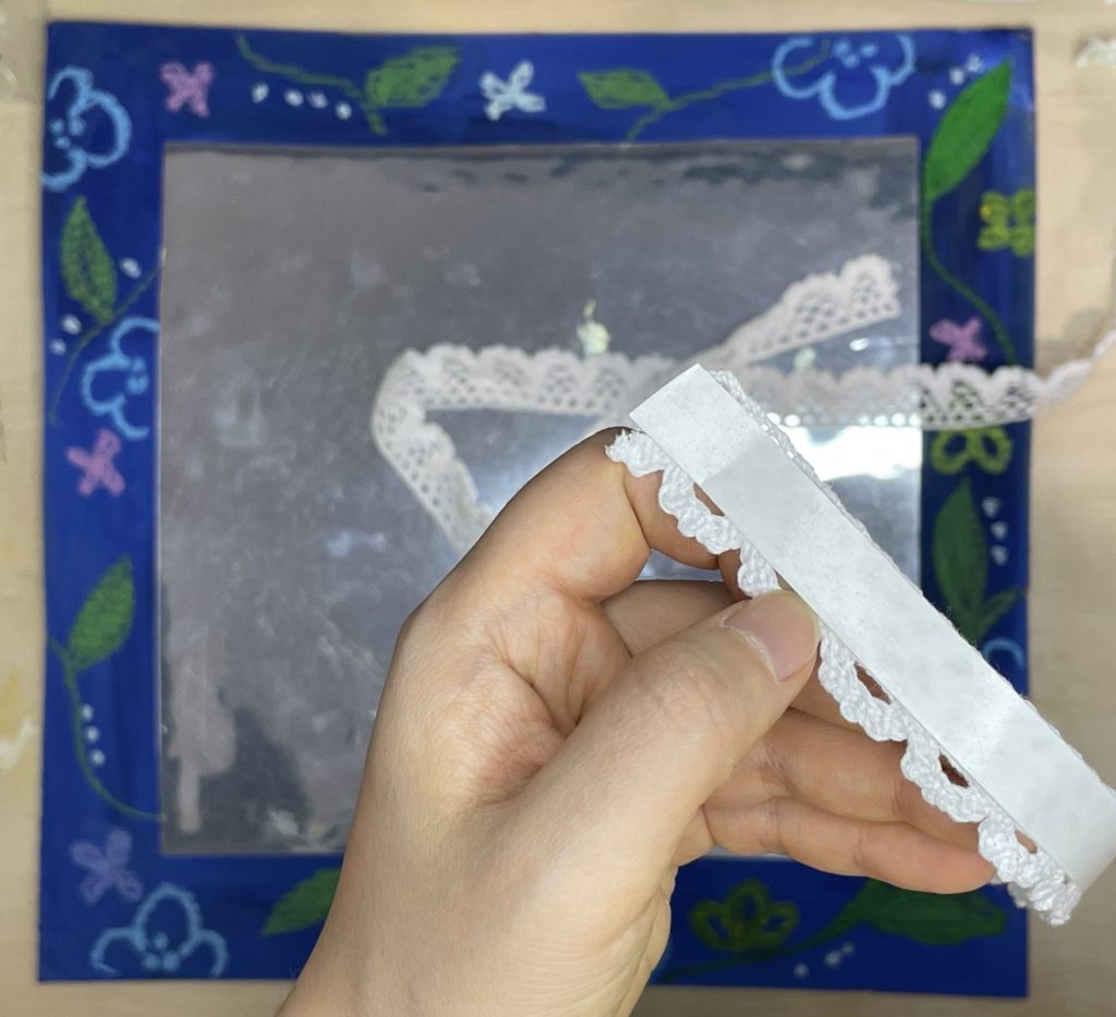 - 거울지를 내가 원하는 모양으로 오려서 거울 프레임에 붙여줍니다.