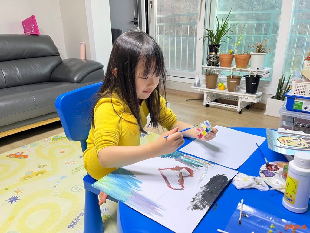 - 크레용 또는 오일파스텔, 유성매직, 보드마카, 포스카마카, 아크릴물감 (유성 재료)를 이용하여 원하는 그림을 그려줍니다.
